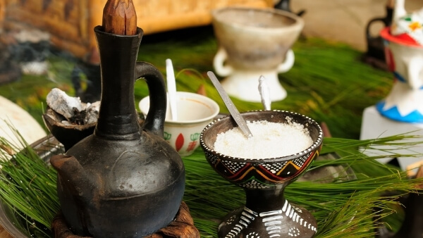 Genauso vielfältig wie die Länder auf dem afrikanischen Kontinent sind, sind auch die jeweiligen, lokalen Kaffee-Zubereitungsarten. Um hier mal eine, zumal die Bekannteste, herauszupicken: Die traditionellen Kaffeezeremonien in Äthiopien und Eritrea ähneln sich sehr stark und sind ein fester Bestandteil des sozialen Lebens in den ostafrikanischen Ländern. Dafür werden die Kaffeebohnen zunächst auf offenem Feuer geröstet, danach zerstoßen und in die Jabana, die typische Kaffeekanne aus Ton, gegeben. Ähnlich wie beim Mokka wird der Kaffee in der Jabana mit heißem Wasser aufgekocht. Die schwarze Flüssigkeit wird aus kleinen Tassen ohne Henkel, dafür aber mit jeweils einem Löffel Zucker, getrunken, ehe die nächste Runde angestimmt wird – der gleiche Satz wird bis zu 3 mal aufgegossen.